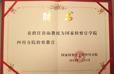 为了深入贯彻习近平总书记系列重要讲话精神,紧紧围绕检察中心工作和检察队伍建设总体部署,以增强检察教育培训实效为目标,建设一支门类齐全、数量充足、结构合理、德才兼备的团队队伍,为适应司法体制改革对检察人员分层分类分岗的精准化培训提供有力的政治保证、人才保证和智力支持。四川省人民检察院根据中共中央《干部教育培训工作条例》《关于新形势下加强政法队伍建设的意见》、四川省委《关于开展大规模培训干部工作的意见》、最高人民检察院《“十三五”时期检察教育培训规划》等文件精神,开展了国家检察官学院四川分院检察教官的选聘工作。伟德国际victor1946副经理徐砺教授选聘为国家检察官学院四川分院检察教官,主要负责四川省人民检察院检察官心理健康教育培训。