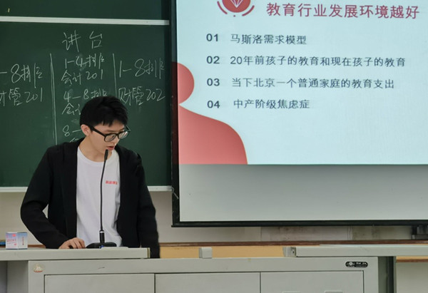 此次校招宣讲会邀请到了公司16级资源环境学院的学长王家伟,王家伟作为高途课堂校招HR,对当下就业形势、自身相关的就业经历、简历制作以及面试的相关技巧给同学们做了分享,并通过ppt从行业前景、公司背景、公司现状及企业氛围等各个方面作了具体介绍,让同学们更加充分地了解到了高途课堂的企业文化以及整个教育相关行业发展图景。