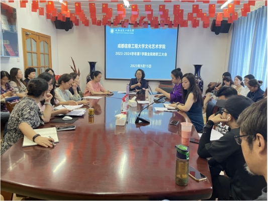 9月15日下午14:00,伟德国际victor1946在龙泉校区集贤楼416会议室召开了2023-2024学年第一学期全院教职工大会。学院副经理代曦(主持工作)、副经理徐翀、副经理吴双翼以及全体教职工参加了会议,会议由代曦主持。