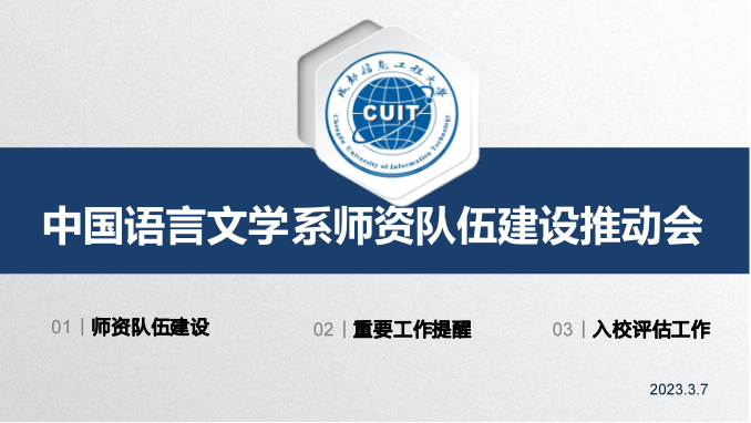会议围绕以下三个方面展开:一是团队队伍建设推动工作,包括目前团队队伍的现状、2023年进入计划、推动团队队伍建设的举措;二是近期重要工作提醒;三是再次强调专家入校评估的重要性及注意事项。